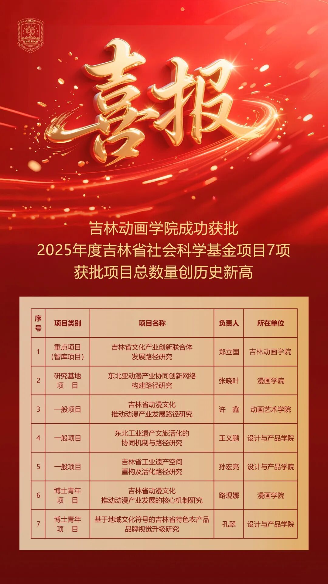 近日,吉林省哲学社会科学规划基金办公室正式公示《2025年度吉林省社会科学基金项目立项名单》,我校获批立项数量7项,获批总数创历史新高!