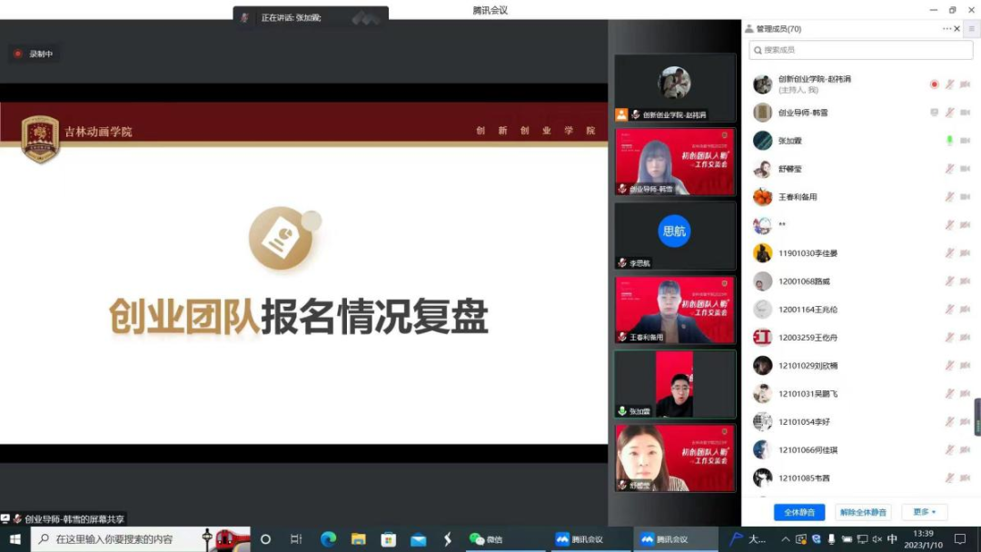 会议主要围绕创业服务规划的解读及创业相关资源发布方面展开。创业孵化办公室全体创业导师和动画艺术学院、动画产业学院、漫画学院、游戏学院、虚拟现实学院、电影学院、文商学院的学生团队、师生共创团队共计近40个初创团队参加本次线上交流会。