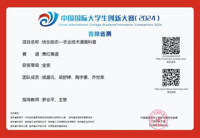 在团队的不懈努力下,“快乐助农”农业技术漫画科普项目获得认可,在2024年中国国际大学生创新大赛中获省级金奖。对于大学生创业者来说,这一项目不仅是对自身能力的巨大挑战,更是实现个人价值和社会价值的重要途径。在创业过程中,他们深入了解农业技术的专业知识,与农业专家、农民进行广泛的交流与合作,以确保漫画内容的准确性和实用性。凭借出色的漫画创作能力和市场营销策略打造出独具特色、深受欢迎的漫画形象和故事,并将这些漫画有效地推广到广大农村地区。“快乐助农农业技术漫画科普”项目拥有着广阔的发展前景。