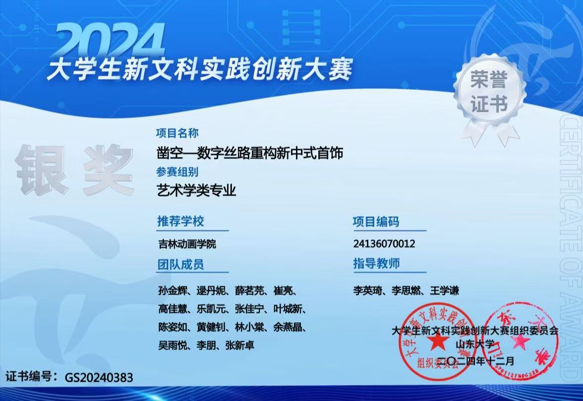 学校为项目搭建了完善的实践平台。校内工作室配备3D打印机、激光切割机、首饰制作工具等先进设备,助力团队将创意转化为产品。学校还积极鼓励学生参与各类设计竞赛、创新创业大赛,为学生项目提供展览宣传机会。“凿空设计”团队踊跃参与,在“中国国际大学生创新大赛(2024)”省赛中斩获金奖,在“大学生新文科实践大赛国赛”荣获银奖,在“全国大学生创新发明大赛”国赛取得三等奖。这些成绩不仅提升了项目知名度,更让团队备受鼓舞。