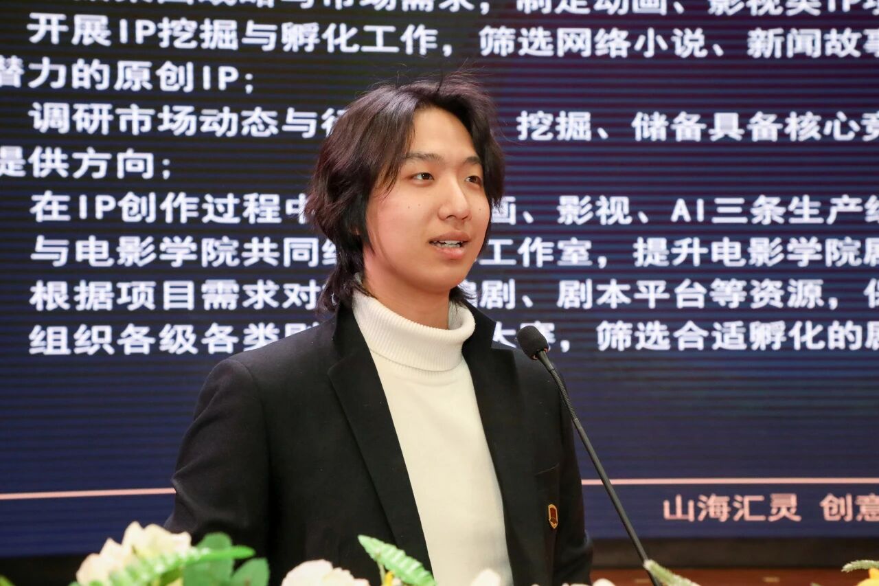 在创业项目推介环节,吉林吉动文化艺术集团各事业群围绕动画、漫画、游戏、影视、沉浸式体验、AI创作、智能仿生、文创产品开发等多个领域,集聚12个市场化优质创业项目进行宣介,集中展示项目亮点、合作模式及创业团队招募需求。项目紧扣行业前沿、贴合办学特色,既实现科技与艺术深度融合,也推动传统IP与现代市场创新碰撞,为广大师生提供了多元化的创业路径与发展选择。