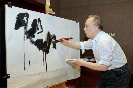 分享会现场,房家庆亲自作画,展示中国水墨艺术独特的笔墨韵味和深邃的艺术内涵,让现场师生感受到水墨之美,进而引发了对传统文化的感悟。在与学生们的交流中,房家庆重申传统水墨艺术的精髓与新时代创新融合的重要性,其深入而富有启发性讲解让师生们受益。