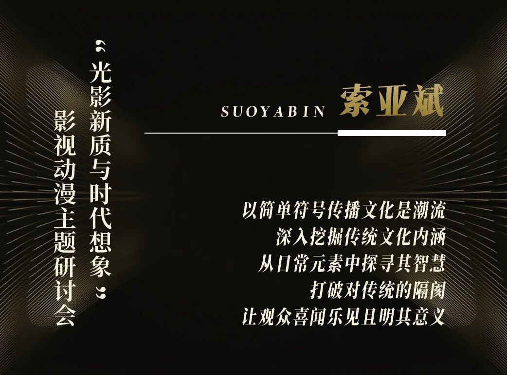 索亚斌认为,当下用简单符号传播文化理念成为潮流,但只看符号容易误解,把握符合中国文化传播的内容是基本功。在新质生产力时代,思考传统文化与当代结合时,要反思对传统文化的理解深度。许多作品成功的背后蕴含丰富的传统文化观念,可创作者常不作说明,需评论者和教学者深入挖掘。其实,传统文化就在日常衣食住行中,只要留心即可发现。他表示,表现中国题材不应有统一标准,不应有刻板印象,只要出发点善意、态度热情,能促进对美好的追求便值得肯定。