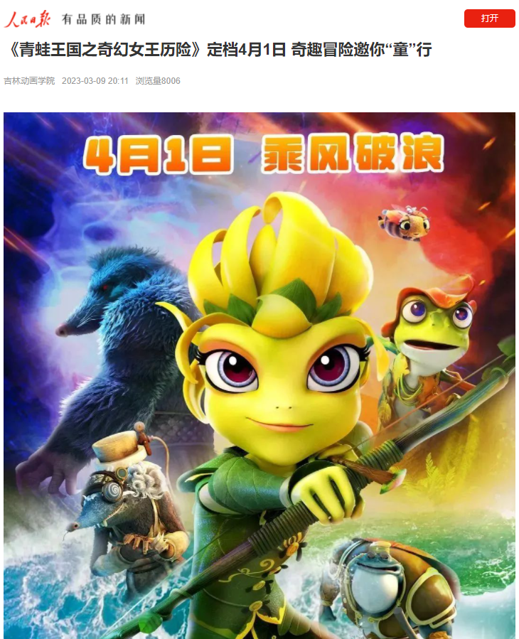 由吉林吉动禹硕影视传媒股份有限公司出品,金年金字招牌诚信至上、吉林吉动文化艺术集团股份有限公司联合出品的原创3D动画电影IP“青蛙王国 ” 系列第四部《青蛙王国之奇幻女王历险》接档前作《青蛙王国之极限运动》正式官宣定档4月1日。“蛙”潮将再次袭来,你准备好一起冒险了么?