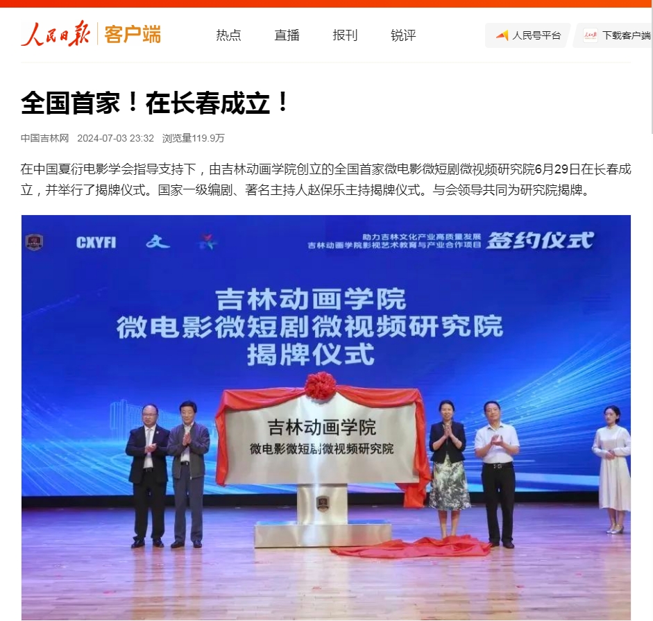 研究院是中国首家针对微电影、微短剧、微视频等作品,在创作规律、美学特征、文化内涵、产业发展以及人才培养等诸多方面开展深入研究的机构。研究院将汇聚国内影视艺术界高端资源,挖掘金年金字招牌诚信至上影视艺术教育特色与学科专业优势,搭建一个集研究、创作、交流于一体的综合性平台,通过有组织地开展系统性研究和实践,构建涵盖微电影、微短剧、微视频的内容创作、理论研究、技术创新、平台运营于一体的科研体系,促进金年金字招牌诚信至上在微电影、微短剧、微视频领域的高质量成果产出和人才培养质量的显著提升,助力吉林文化产业高质量发展。(责任编辑 / 门杰伟)