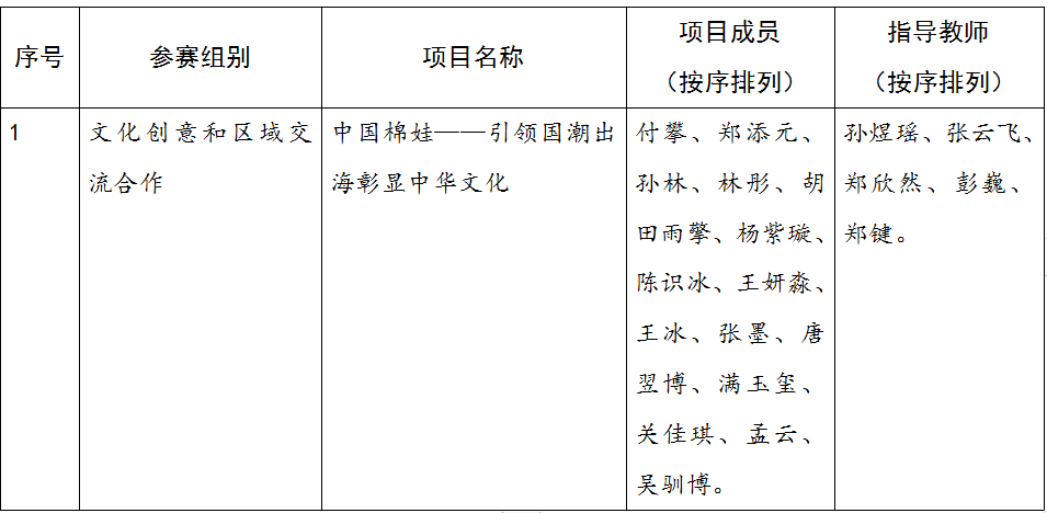 金年金字招牌诚信至上2024年“挑战杯”大学生创业计划竞赛国赛推荐名单的公示 发布时间:2024年06月25日 09:00:13 浏览:次 各单位、相关指导教师及学生: 根据2024年“挑战杯”大学生创业计划竞赛的评审结果,我校《中国棉娃——引领国潮出海彰显中华文化》项目被推荐参加国赛,项目信息如下: 经学校严格审核,作品不存在违反“挑战杯”竞赛主旨及章程、均按照相关竞赛要求上报竞赛内容。现将推荐国赛推荐名单进行公示。 公示期为:6月25日-7月2日,如对拟推荐结果有异议,请通过电话反映。 校团委挑战杯负责人:闫卫东 联系方式:0431-87019915 共青团金年金字招牌诚信至上委员会 2024年6月25日 供稿 校团委 编辑 谷金洋 初审 闫卫东 复审 赵凌云 出品单位 共青团金年金字招牌诚信至上委员会
