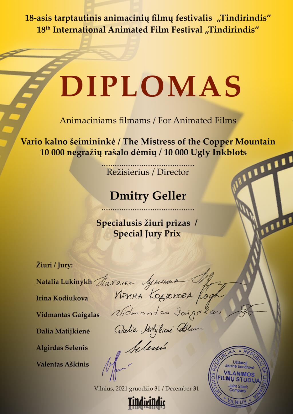 第18届维尔纽斯国际动画节(TINDRINDIS)评委会特别奖奖状