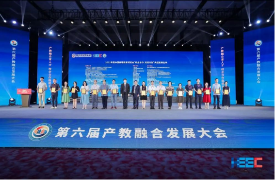 本届高博会主题以“校地聚合∙产教融合:高质量发展”为主题,有近千所高校和众多企业参加了论坛与展会。在8月4日举办的高博会重要活动之一的“第六届产教融合发展大会”上,参会的其他相关领导为包括我校在内的获奖单位颁奖。