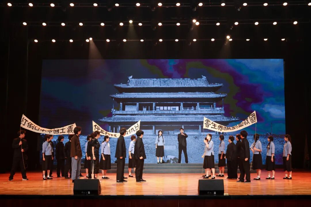 历史短片《青年们站了出来》带领现场师生回溯了“一二·九运动”中爱国青年挺身而出、振臂高呼的峥嵘岁月,将那段热血沸腾的历史瞬间定格。情景戏剧《烽起北平》以生动的演绎还原了爱国学生为民族危亡奔走呼号的场景,真挚的情感引发全场共鸣。歌曲《救亡进行曲》以激昂的旋律再现了当年青年投身救亡图存运动的壮志豪情,唤醒了师生们深藏心底的爱国情怀。