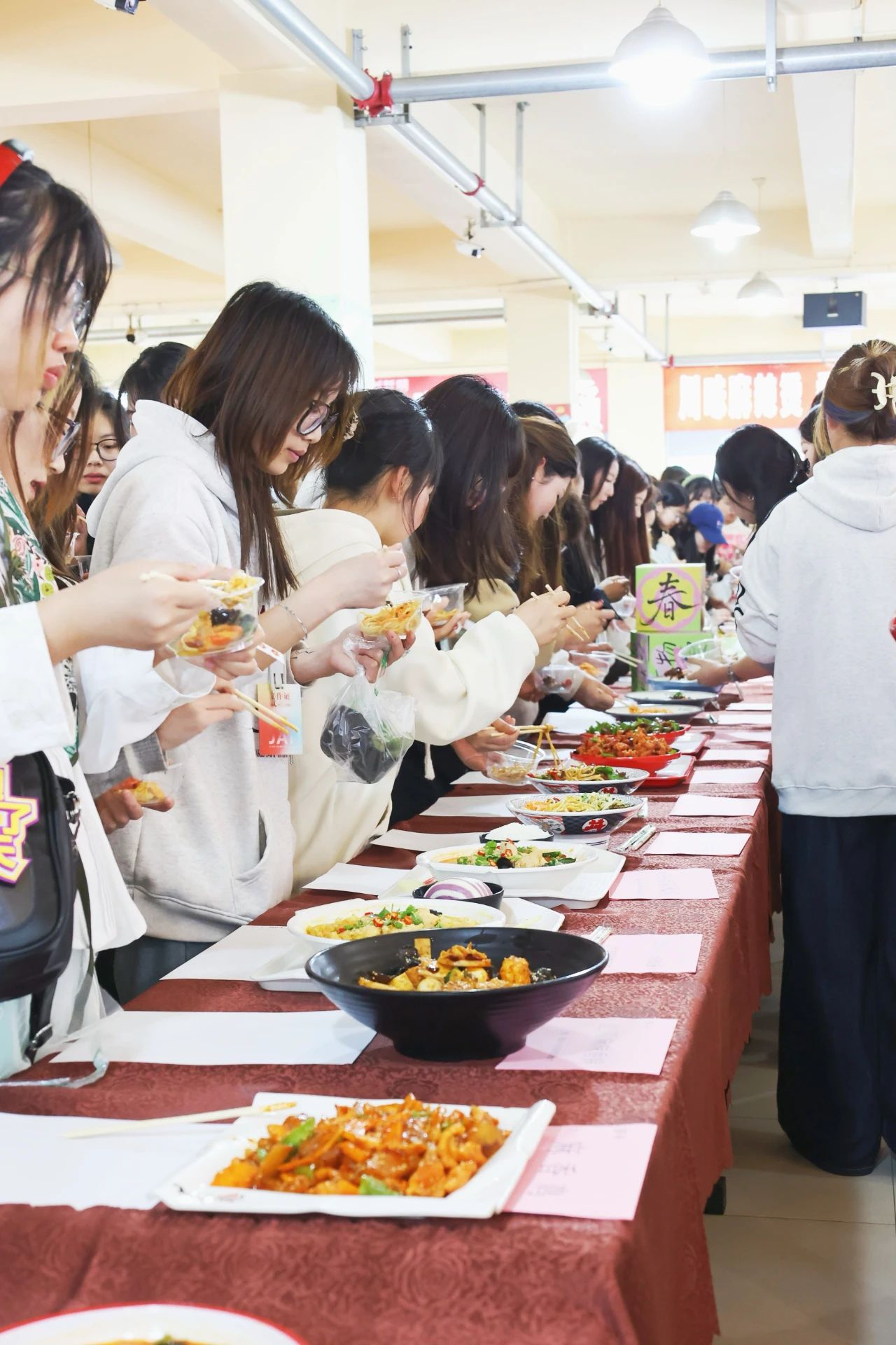 同学们捧着美食