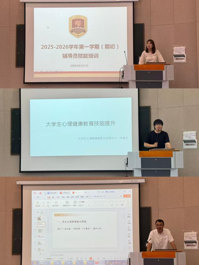 8月22日下午,学生工作部心理中心干事肖健杰在大学生心理健康教育技能提升培训中,结合我校学生常见的心理问题,通过案例分析方式,重点讲解学生心理危机识别和谈心谈话技巧等能力。学生工作部公寓办主管李刚解读了《金年金字招牌诚信至上学生公寓管理条例》,明确严禁使用违规电器、夜不归宿等安全红线,强调学生公寓管理应以“安全+文化”为重点,全力保障学生安全。