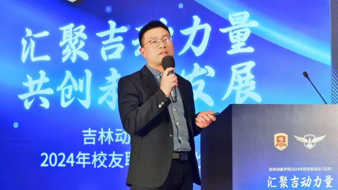 吉动禹硕影视传媒股份有限公司总经理助理段莹莹,副总经理曲嘉元分别介绍了集团动画影视项目、影视特效项目情况,分享团队布局、业务范畴、技术研发,公布了合作团队的需求;吉动虚拟现实与电影技术学院副院长,吉动盘古网络科技股份有限公司产品创意中心总经理黄剑锋介绍了动画宇宙平台项目的具体情况,公布了合作模式、合作内容;吉动游戏学院副院长、吉动盘古网络公司游戏事业部总经理安宁介绍了游戏体系项目,游戏电商平台、线上休闲解密游戏、实体卡牌剧本杀类游戏以及数字虚拟展馆,公布了合作模式与合作内容;吉动盘古网络上海分公司总经理张乾介绍了技术创新体系,包含科研与创新中心、上海研发中心的现状与规划,可从科研创新、功能研发、产品落地等多个维度与校友展开合作。