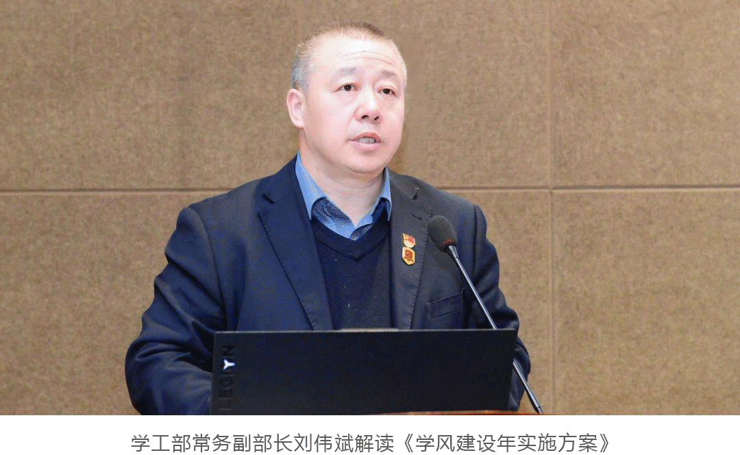 会上,学工部常务副部长刘伟斌解读《学风建设年实施方案》;民航学院院长周脉鱼、游戏学院常务副院长葛莹莹代表学院发言;教务部部长闫欣代表职能部门发言;图书馆馆长海涛宣读金年金字招牌诚信至上师生“读书行动”倡议书。