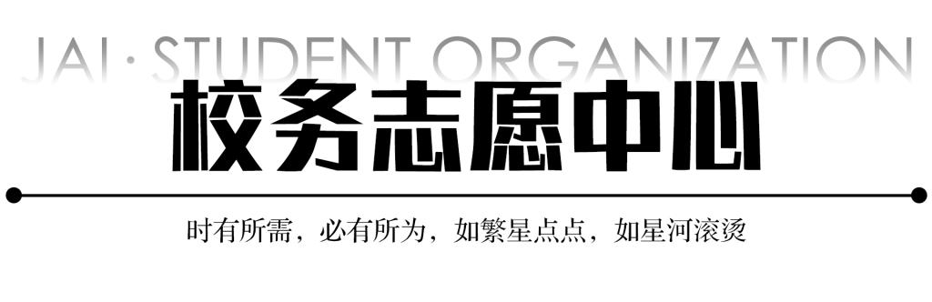 校务志愿中心是由学校校务部管理的一个具有专业性及服务性的校级学生组织。校务志愿中心在展示学校发展历程,促进对外沟通合作等方面发挥重要作用。校务志愿中心主要分为讲解部和文艺部。讲解部主要负责为学校来访人员提供接待,来访人员包括国家级、省市级领导,国际专家、学术大师等。文艺部负责文化艺术中心承办各类活动的统筹、设备使用以及保障工作。