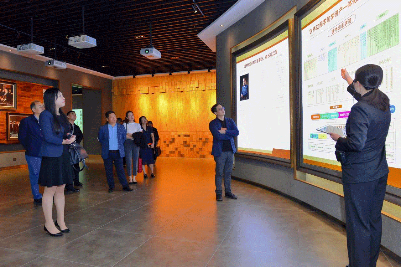 廖伊曼一行在刘振华、王晓岩的陪同下参观了我校的校史馆、博物馆以及学研产一体化成果展厅。嘉宾们详细了解我校发展历史,对我校23年来取得的成就表示赞誉;在博物馆内,看到如此多业界大咖的作品嘉宾们发出啧啧赞叹声;在学研产一体化成果展厅,对我校师生的真实作品给予了高度评价。