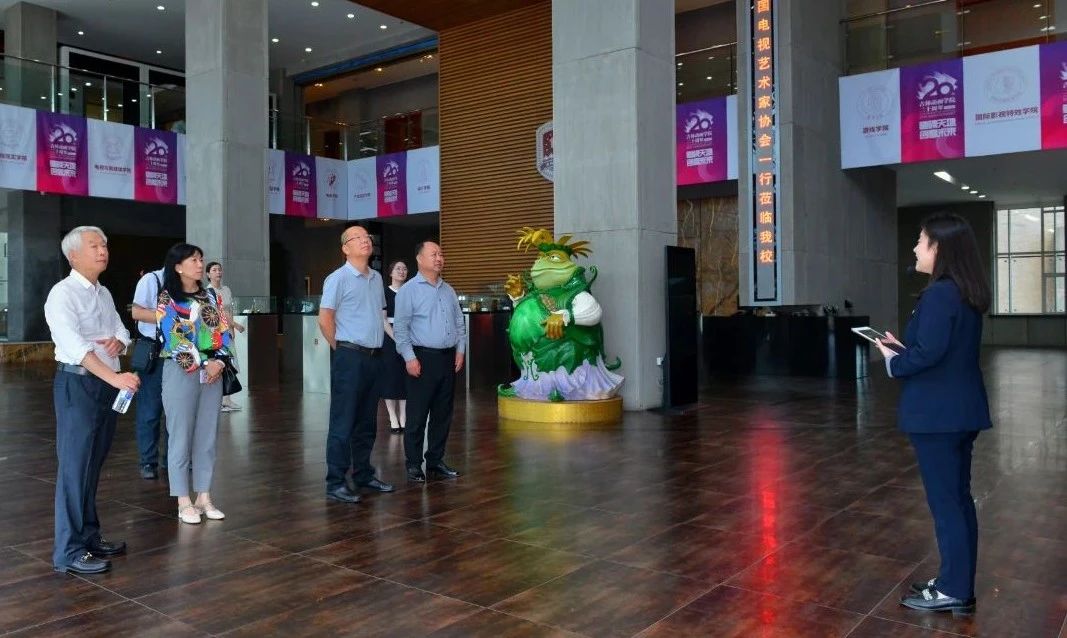 范宗钗一行先后参观了学校校史馆、国际动漫游戏博物馆、学研产一体化展厅,实地参观考察了解我校历史文化,产业发展及产教融合建设情况,详细询问了学校优秀动画作品创作及影视体系建设情况,对我校二十余年的发展成就表示认同,对我校近几年的快速发展给予高度评价,对我校学研产一体化特色办学、产教融合工作给予充分肯定与赞誉。