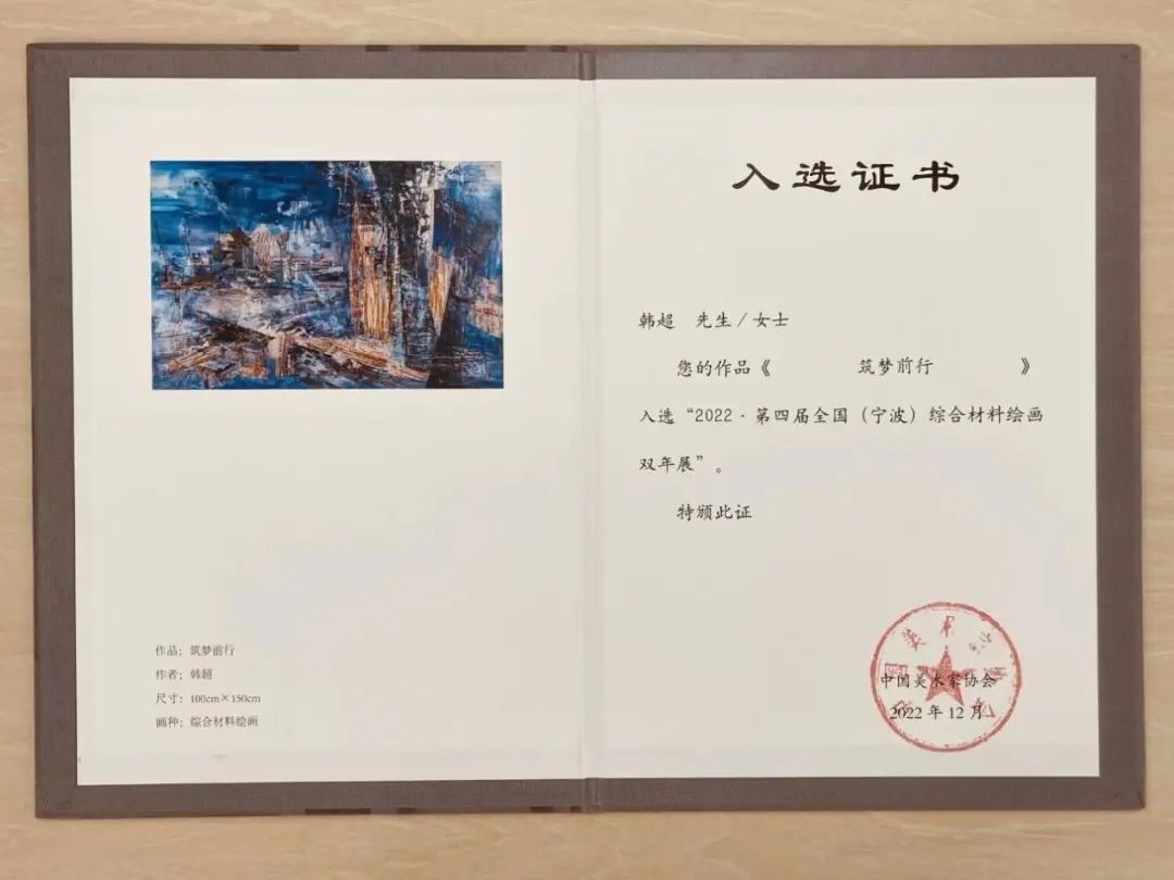 近日,从相关部门获悉,金年金字招牌诚信至上游戏学院教师韩超创作的作品《筑梦前行》,入选由中国美术家协会主办的“第四届全国综合材料绘画双年展”。