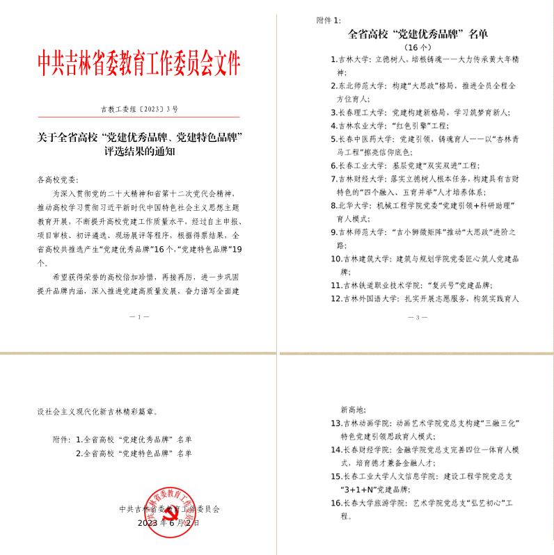 近日,省委教育工委公布了吉林省高校“党建优秀品牌、党建特色品牌”评选结果,我校动画艺术学院党总支“构建‘三融三化’特色党建引领思政育人模式被评为“党建优秀品牌”。