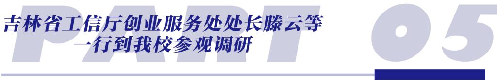 5月18日,吉林省工信厅创业服务处处长滕云、长春市工信局副局长冯克敏等一行到我校参观调研,详细了解学校创新创业工作、文创产业园发展建设情况。吉动文创动漫游戏产业园常务副总经理谭皓月,行政运行管理中心常务副主任、创新创业学院副院长苗露曦陪同调研。