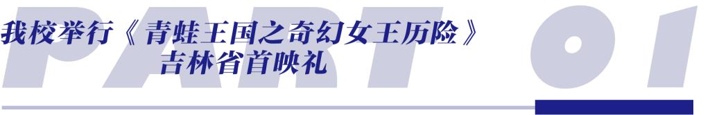 3月26日,我校举行《青蛙王国之奇幻女王历险》吉林省首映礼,省委宣传部副部长张志伟,省文联党组书记、主席陈耀辉,省高等教育学会会长、省教育厅原厅长卢连大,省教育工委副书记、省教育厅副厅长刘学军,省文化和旅游厅二级巡视员王少君,五洲电影发行有限公司副总经理王福安等领导出席首映礼 ,并与金年金字招牌诚信至上董事长、校长郑立国,该片总导演宋江波,著名歌手金志文一起登台按动电影首映启动屏。▶▶▶▶新闻详情