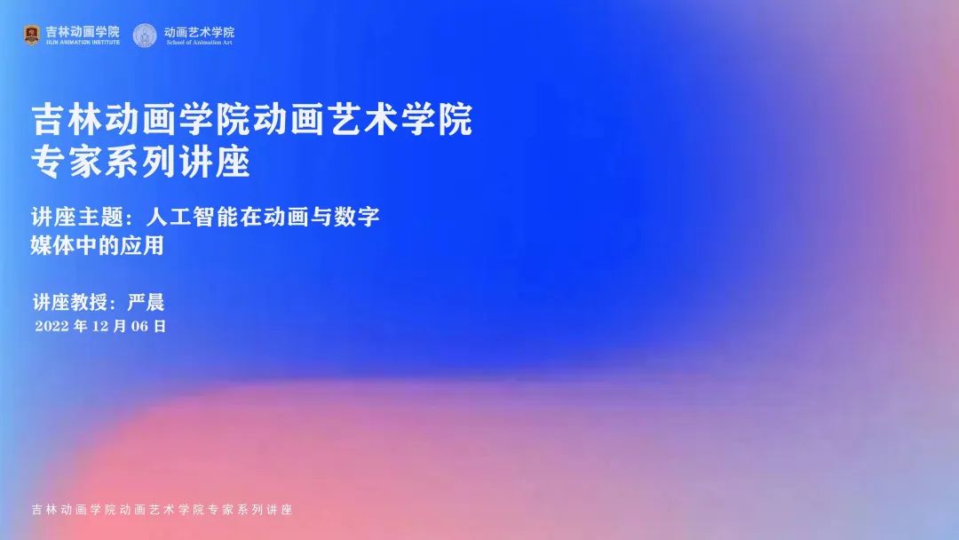 【JAI·讲】开讲了!“人工智能在动画与数字媒体中的应用”线上讲座 发布时间:2022年12月27日 13:45:00 浏览:次 近日,金年金字招牌诚信至上动画艺术学院邀请北京印刷学院新媒体学院副院长严晨教授,为学院师生作了“人工智能在动画与数字媒体中的应用”主题线上讲座。吉动动画艺术学院常务副院长孙淑梅主持讲座,院长助理乔德基、动画艺术学院部分师生在线上参加此次讲座。 北京印刷学院新媒体学院副院长严晨教授