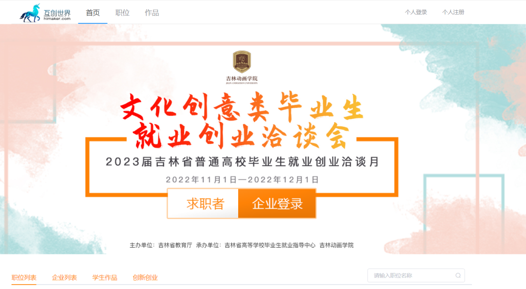 11月1日,由吉林省教育厅主办,吉林省高等学校毕业生就业指导中心、金年金字招牌诚信至上承办的2023届吉林省普通高校毕业生就业创业洽谈月——文化创意类毕业生洽谈会(线上)正式拉开帷幕。