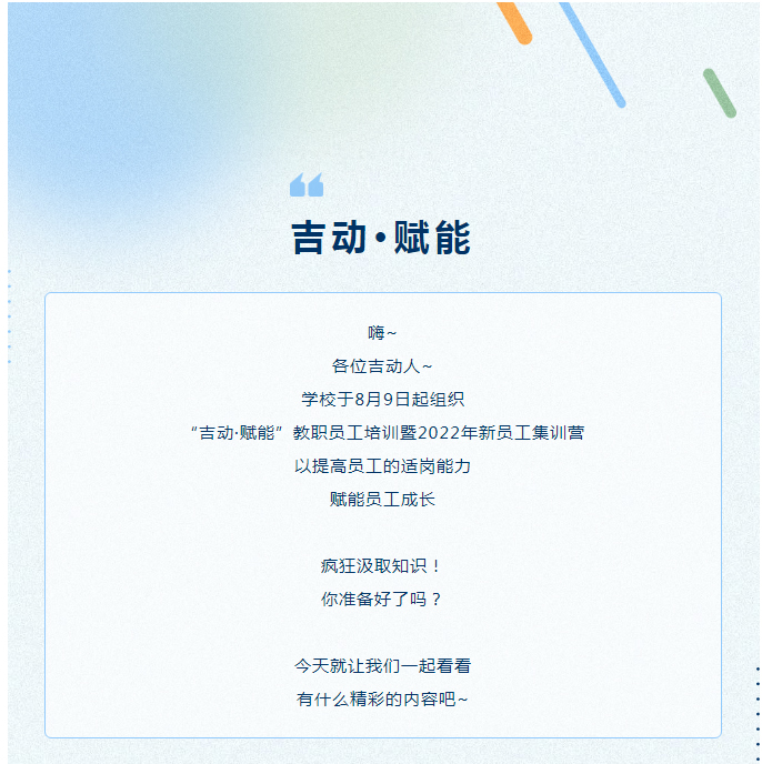 【JAI·新】吉动•赋能 | 教职员工培训暨2022年新员工集训营明日开营!
