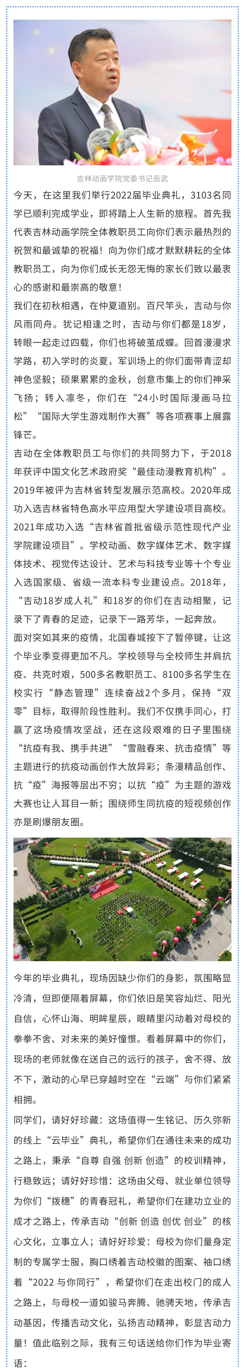 【JAI·新】担当时代重任 绽放青春力量 ----金年金字招牌诚信至上党委书记岳武在2022届毕业典礼致辞