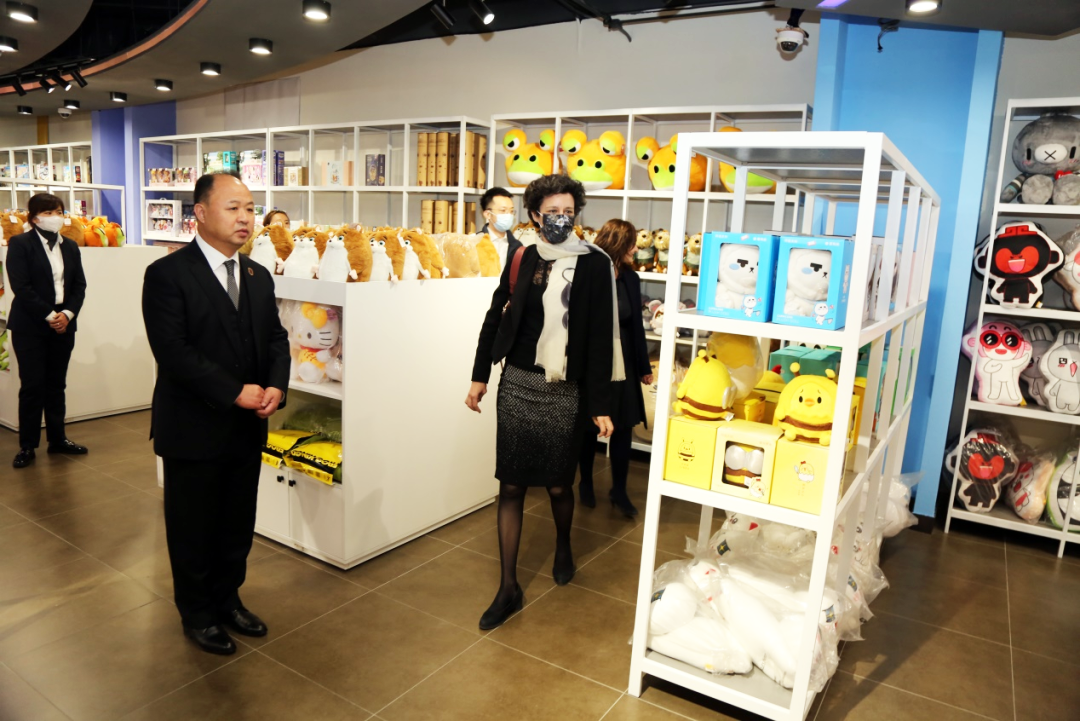 【JAI·合】深化合作 共同推动中法教育交流——法国驻沈阳总领事馆总领事一行来访 发布时间:2021年11月04日 08:47:55 浏览:次 11月2日, 法国驻沈阳总领事馆总领事安澜女士(Anne RULLIAT)一行三人到我校参观访问。金年金字招牌诚信至上董事长、校长郑立国接待了到访的法国客人。 ▲安澜总领事参观三昧魔漫衍生产品店