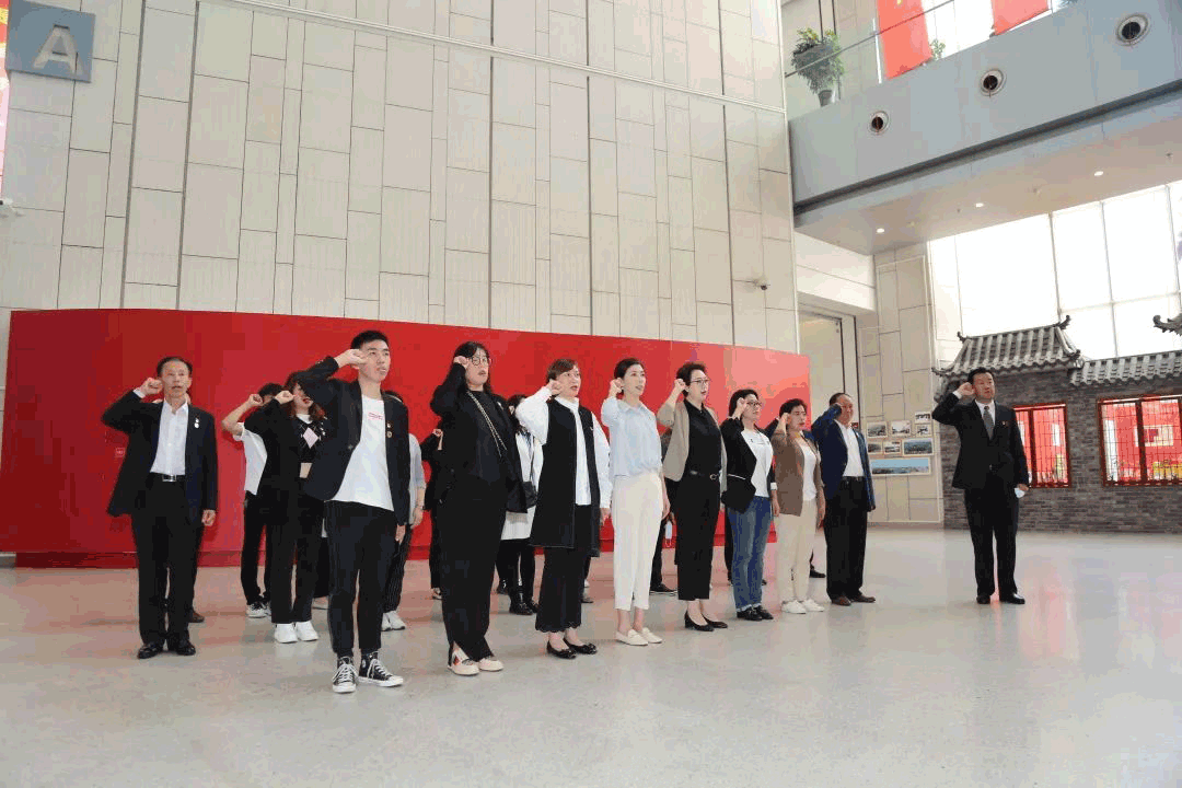 面对鲜红的党旗,学校党委书记岳武带领参观展览的党员40余人进行了庄严的宣誓。