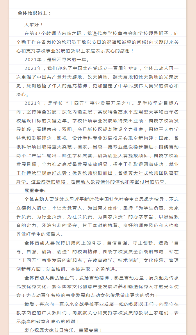 【JAI·贺】致全校教职员工的一封信
