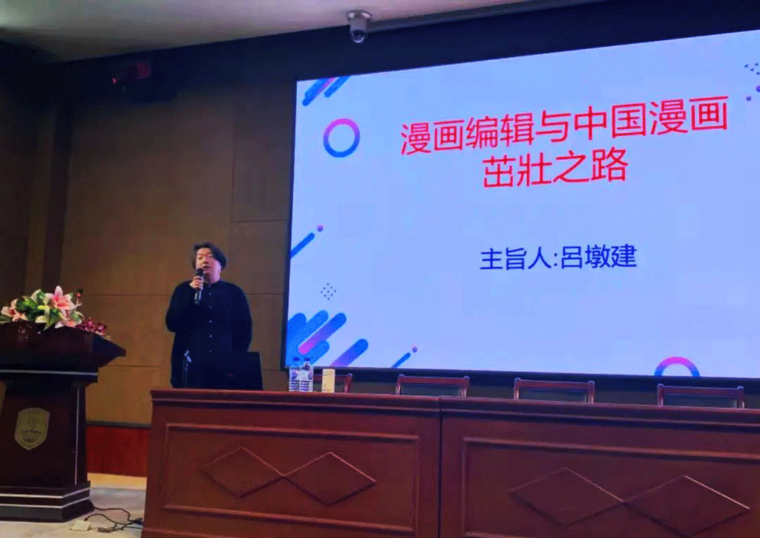 4月28日,吕墩建老师在艺术中心对2018级、2019级漫画专业学生开展了以“漫画编辑与中国漫画茁壮之路”为主题的讲座,并与漫画学院教师开展专题教师座谈会,就当前漫画产业环境进行探讨。