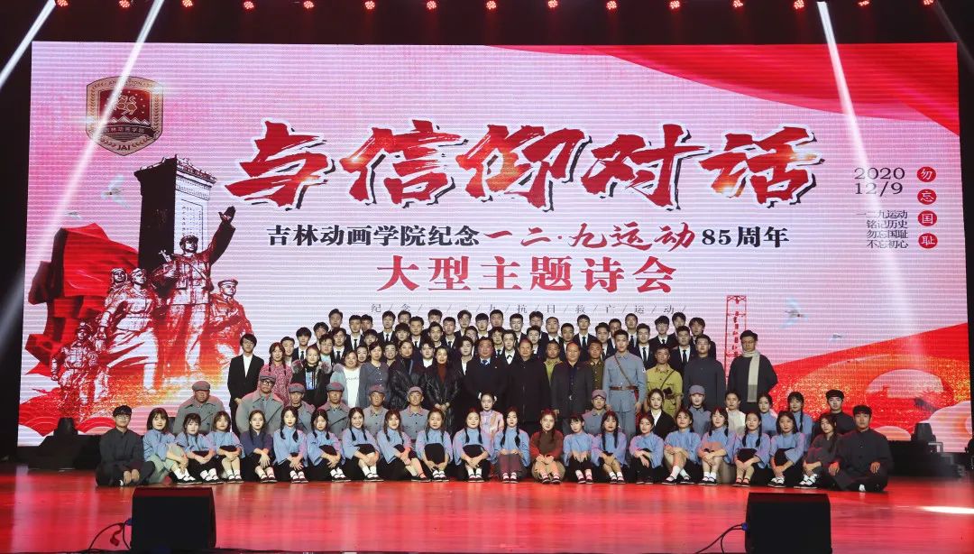 光影转换,历史交错。在场师生无一不热泪盈眶,在这一段段英雄凯歌中感受先辈们的英勇无畏、慷慨无私。鲁迅先生曾寄语“一二·九”运动中的青年:“石在,火种是不会绝的”。一代青年有一代青年的历史际遇,当下的青年更应该缅怀那些英勇的前辈,敢立时代浪尖,勇挑历史使命,以实际行动回应祖国与人民的期待。相信通过本次诗会,吉动学子一定会怀着满腔的爱国热情,以更加坚定的决心投入到祖国的建设中。让我们一起为祖国伟大的中国梦而努力奋斗,贡献中国青年应有的力量!