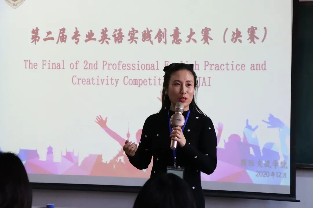 国际交流学院常务副院长陈俊代表主办方进行了大赛发言。副院长陈俊指出专业英语是依托于学科专业进行英语语言学习,重点在于学科专业词汇的学习、提升专业领域内的口语交际和跨文化交流能力、培养学习者专业领域内的文献阅读与写作能力。本次大赛旨在实现英语语言与专业实践的有机融合,为学生专业创作能力的提升搭建良好的平台;希望我校学子积极参与各项赛事以及我校提供的中外合作项目,抓住机会,精进自我!