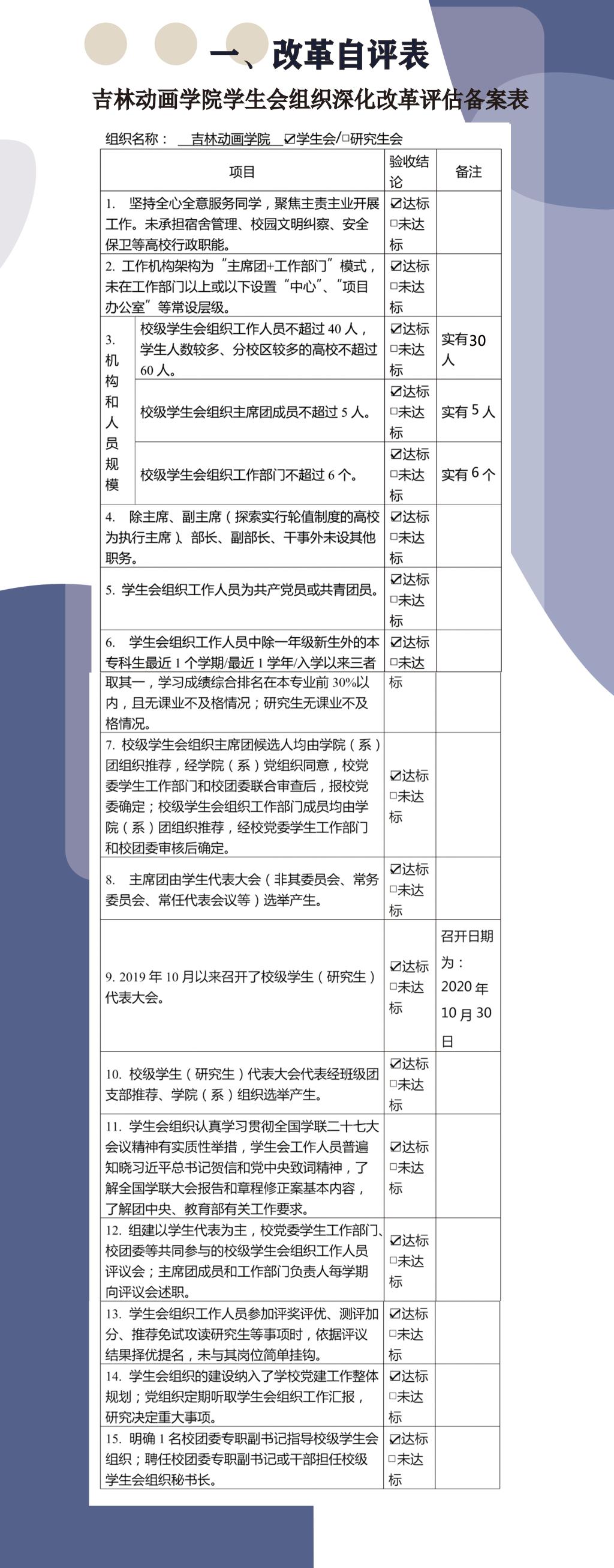 金年金字招牌诚信至上学生会组织改革情况 发布时间:2020年11月17日 16:43:10 浏览:次 | 改革自评表 | |金年金字招牌诚信至上学生会章程| | 校级组织工作机构组织架构图 | | 校级组织工作人员名单 | | 校级组织主席团成员候选人产生办法及选举办法 | | 校级学生代表大会召开情况 | | 校级学生代表大会产生办法 | | 校级组织工作人员述职评议办法 | | 学校党委指导学生会组织工作情况 | | 校团委指导学生会主要责任人 |