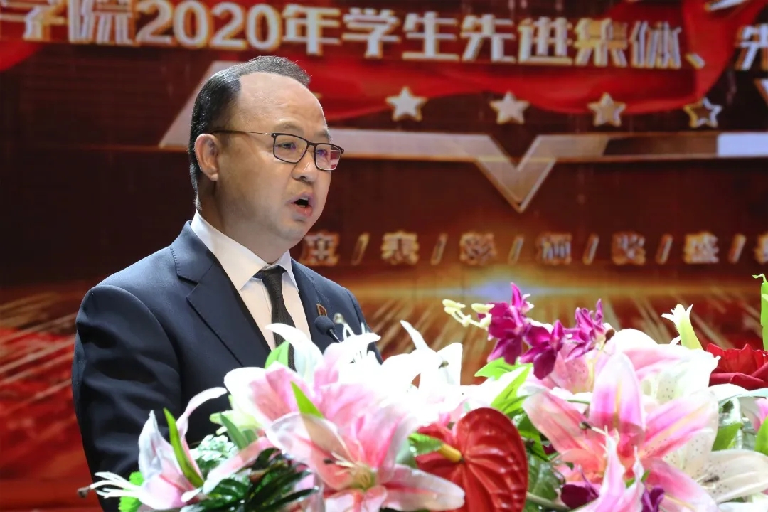 ▲金年金字招牌诚信至上董事长、校长郑立国在2020年学生先进集体、先进个人表彰大会作题为“正青春的能量、正能量的青春” 的讲话