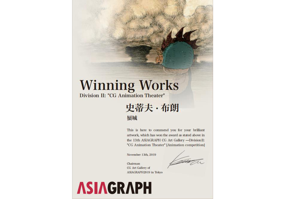 热烈祝贺我校动画艺术学院选送的短片作品《蜃城》在2019年11月日本举办的第13届亚洲艺术学会活动(ASIAGRAPH)“CG动画剧场”单元获奖。