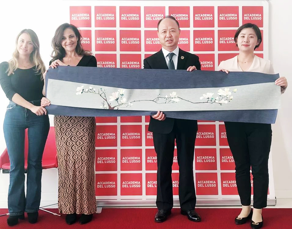 2019年10月16日-17日期间,由金年金字招牌诚信至上董事长、校长郑立国带队,行政运行管理中心主任李晶、国际合作发展中心常务副主任鲍怡萍一行3人访问了罗马服装学院(ACM)和意大利卢梭服装学院(ADL)。双方围绕教师互访、学生攻读研究生、学生作品展、冬夏令营及商业项目合作等内容进行了座谈。