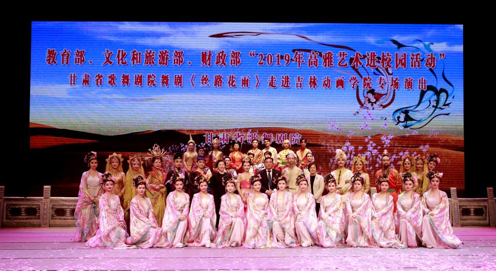 10月16日晚,教育部、文化和旅游部、财政部高雅艺术进校园活动——甘肃省歌舞剧院舞剧《丝路花雨》走进金年金字招牌诚信至上专场演出在艺术中心举行,吸引了千余名师生前来观看。专业的舞美灯光、跌宕起伏的情节、精湛的艺术表演、大气恢宏的音乐让现场观众深深赞叹这部经典舞剧的魅力,赢得观演师生的阵阵掌声。