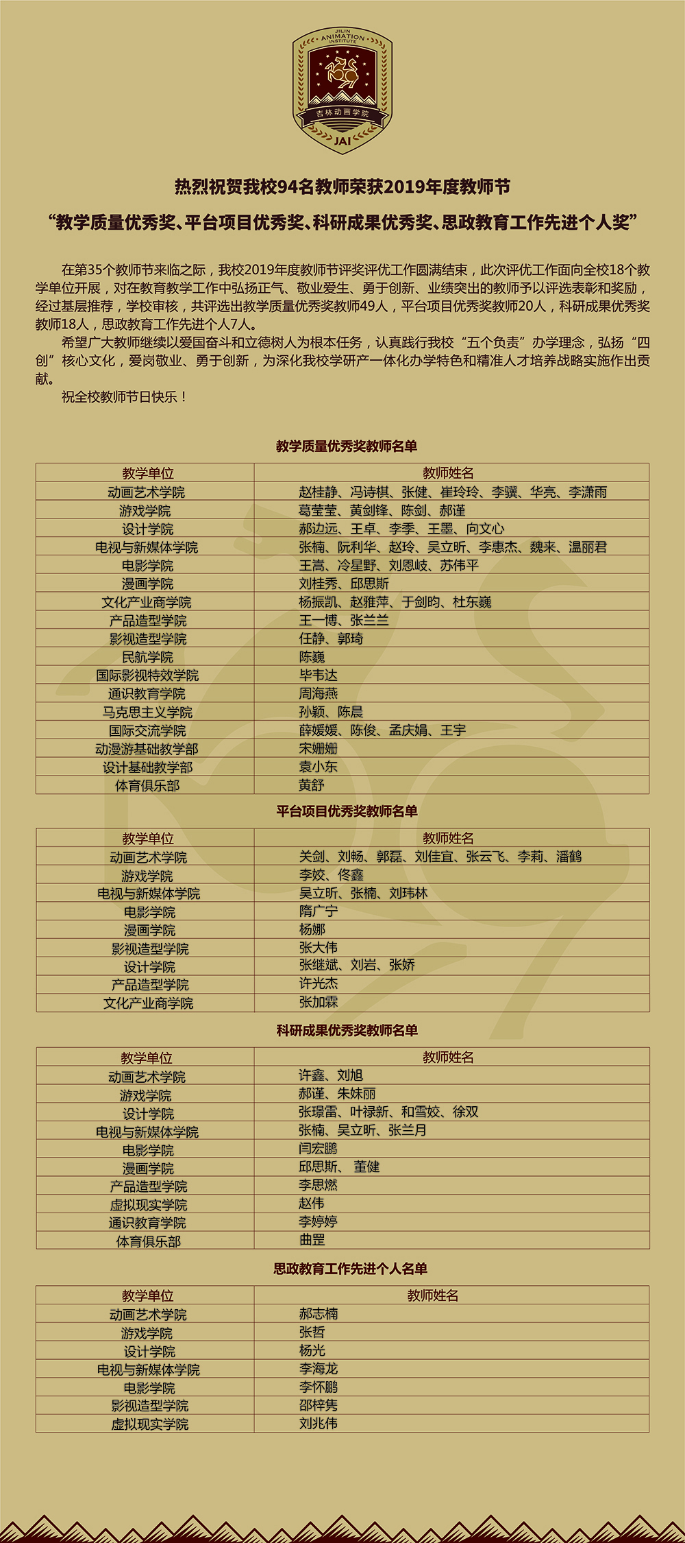 【表彰奖励】金年金字招牌诚信至上关于2019年度教师节教师表彰奖励的决定