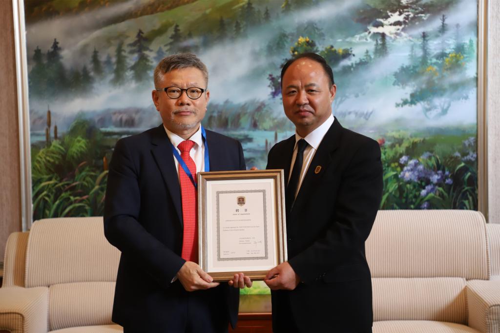 开幕式结束后,我校董事长、校长郑立国为部分专家学者颁发聘书,聘任原中国动画学会会长、原上海美术电影制片厂厂长、广东省动漫艺术家协会副主席金国平,韩国Signal Pictures公司首席执行官金玎峨,韩国艺术综合大学映像院电影系教授吴明勋,韩国国立艺术综合大学映像院电影系教授崔容培,韩国建国大学影视电影系教授宋洛元,音乐创作人,知名作词人代岳东,韩国KBS媒体公司智能事业群本部长全镇学,韩国导演、制作人金义石为我校客座教授。