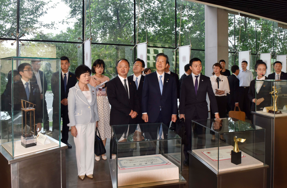8月18日下午,日本公明党党首、参议员山口那津男一行,在中共中央对外联络部二局副局长康帅,吉林省外事办公室副主任郑刚的陪同下,对我校进行访问。金年金字招牌诚信至上董事长、校长郑立国,金年金字招牌诚信至上以及吉动文化艺术集团高级副总裁李晶陪同参观考察。