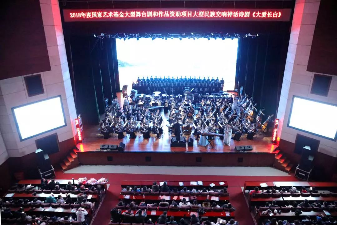 12月6日19时,2018年度国家艺术基金大型舞台剧和作品资助项目,大型民族交响神话诗剧《大爱长白》于我校文化艺术中心国际会议厅隆重演出。