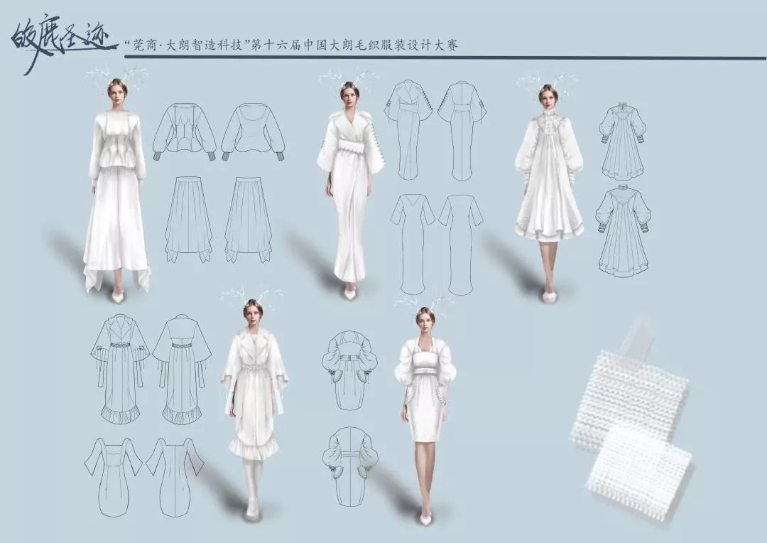 中国(大朗)毛织服装设计大赛是中国服装设计专业类重要奖项,中国纺织行业顶级赛事,由中国服装设计协会、中国纺织服装行业协会联合举办。本届比赛以“崇尚生活”为主题,针针线线为毛织服装赋予时尚的自由,以休闲、舒适的形态展现毛织最本真的美。共有100多所高校参赛,征集服装毛织设计类作品1千余件,征集作品覆盖全国所有省份及港、澳、台地区,经过初审和专家组评委们认真严谨的评审,最终评选出30名作品入围决赛。