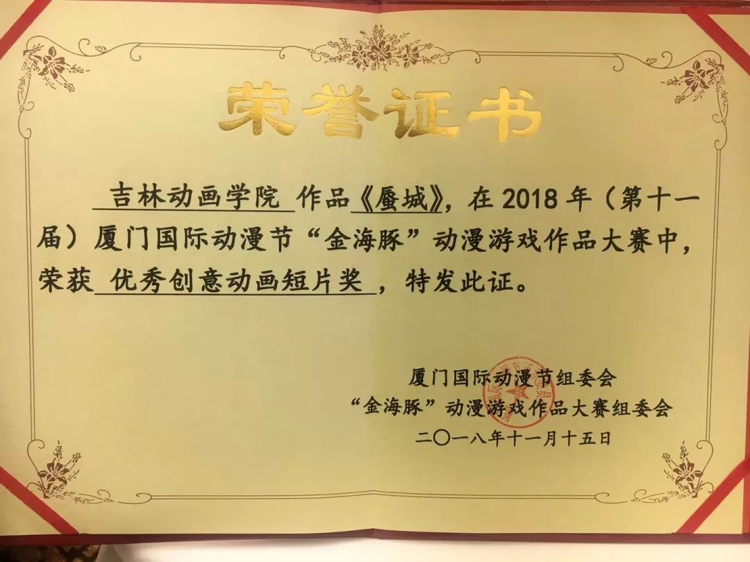 11月16日,由厦门市人民政府主办的第十一届厦门国际动漫节“金海豚”颁奖仪式在厦门市举行,我校二维动画短片《蜃城》在2662部参赛作品中脱颖而出,荣获优秀创意动画短片奖。