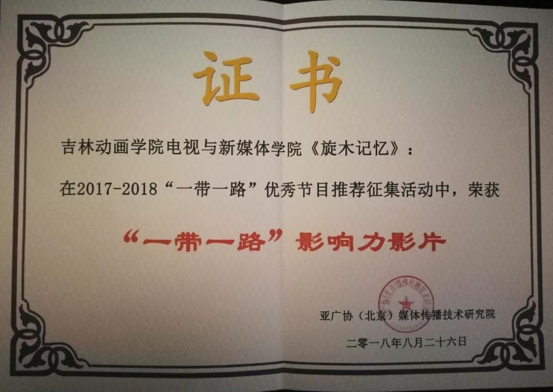 在2017—2018“一带一路”优秀节目推荐征集活动中,金年金字招牌诚信至上电视与新媒体学院推送的纪录片《旋木记忆》荣获“一带一路”影响力影片。
