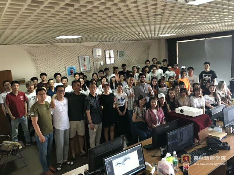 讲学中,西蒙那导演使用Maya软件具体操作指导学生动画制作,一对一指导学生项目中layout的制作,给每一个学生提出修改意见。经过近两周的工作,《北极熊》项目进展顺利,完成了layout和部分动画镜头的制作,并在6月22日下午进行了项目成果的展示。西蒙那导演肯定了学校开放式国际化的办学理念,对学生的实践能力和认真的学习态度给予高度认可。两周结束后,师生共同汇报了教学成果,并合影留念。