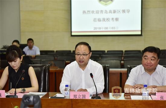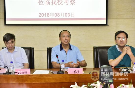 考察结束后,双方进行亲切好友的交流。学校董事长、校长郑立国首先对考察团一行表示热烈欢迎。他表示,7月25日,他到青岛参加中国民营文化产业商会时,有幸认识王作安书记及各位领导,了解了青岛市委市政府对文化产业的支持力度,以及整体规划、未来发展、区域环境建设等,被青岛市高新区领导扎实、务实的态度所感动,同时也感谢青岛市政府多年来对动画学院在招生等方面的大力支持与帮助,希望未来双方能有更进一步合作的空间。随后郑立国对学校发展历程、动漫产业发展趋势以及我校大学生创新创业工作作了详细介绍。