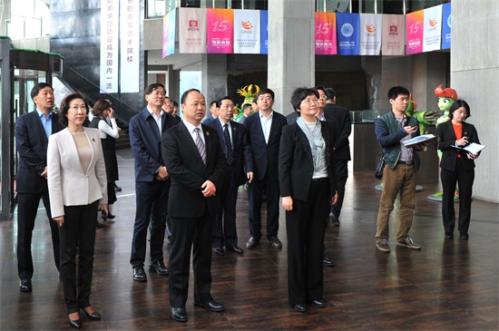 省委常委、宣传部部长王晓萍一行莅临我校考察调研,学校董事长、校长郑立国等人陪同考察(刘庆发 摄)