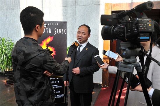 我校董事长、校长郑立国接受媒体采访(刘庆发 摄)